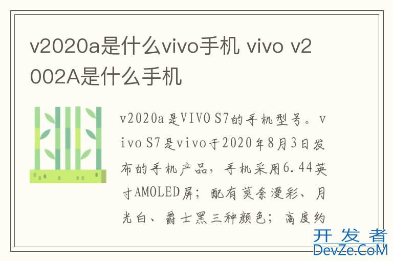 品牌型号:VIVO S7 系统:OriginOS Ocean 2.0v2020a是VIVO S7的手机型号。vivo S7是vivo于2020年8月3日发布的手机产品,手机采用6.44英寸AMOLED