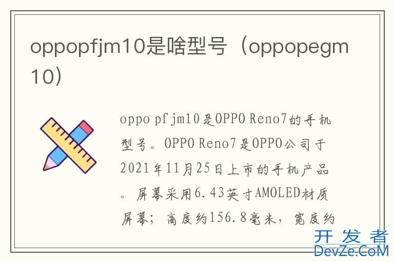 品牌型号:OPPO Reno7 系统:ColorOS V12oppo pfjm10是OPPO Reno7的手机型号。OPPO Reno7是OPPO公司于2021年11月25日上市的手机产品。屏幕采用6
