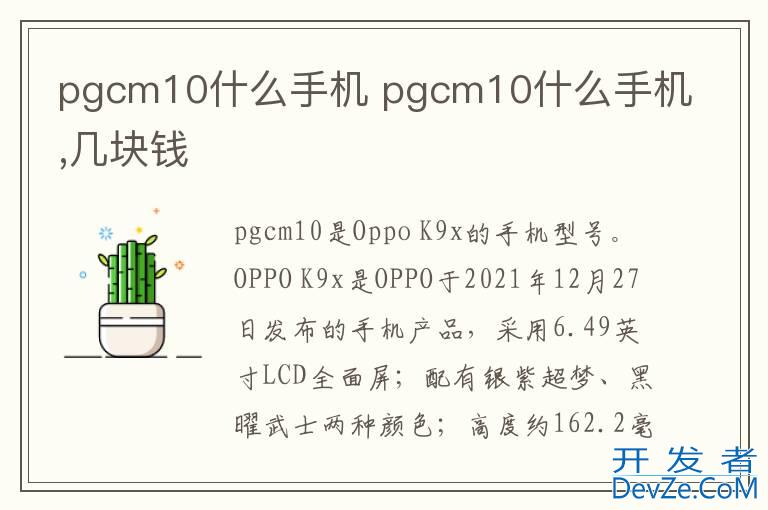 品牌型号:Oppo K9x 系统:colorOS12.1pgcm10是Oppo K9x的手机型号。OPPO K9x是OPPO于2021年12月27日发布的手机产品,采用6.49英寸LCD全面屏;配有银