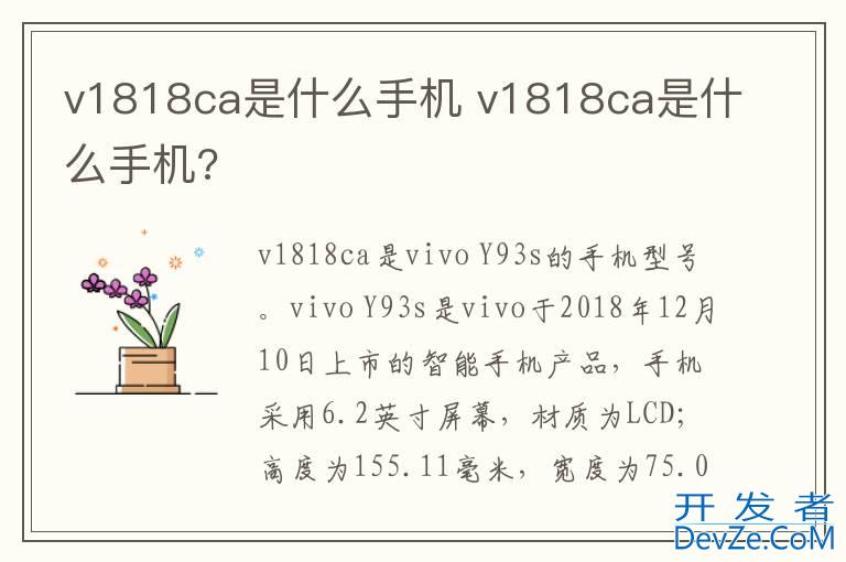 品牌型号:VIVO Y93S 系统:FuntouchOS 4.5开发者_StackOverflow中文版 v1818ca是vivo Y93s的手机型号。vivo Y93s是vivo于2018