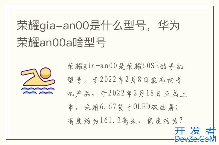品牌型号:荣耀60SE 系统:Magic UI 5.0荣耀gia-an00是荣耀60SE的手机型号。于2022年2月8日发布的手机产品,于2022年2月18日正式上市。荣耀60 SE采用6.67英寸O
