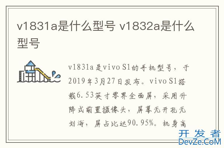 品牌型号:vivo S1 系统:OriginOS 1.0 v1831a是vivo S1的手机型号,于2019年3月27日发布。vivo S1搭载6.53英寸零界全面屏,采用升降式前置摄像头,屏幕无开孔