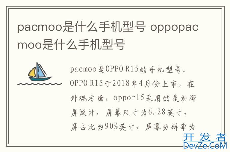 品牌型号:OPPO R15 系统:colorOS12.1pacmoo是OPPO R15的手机型号。OPPO R15于2018年4月份上市。在外观方面,Vivos7采用的是刘海屏设计,屏幕尺寸为6.28