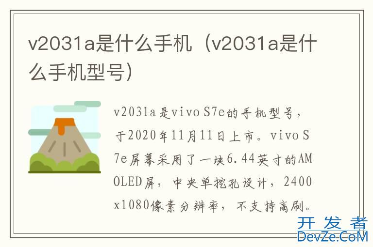 品牌型号:vivo S7e 系统:OriginOS Ocean 2.0v2031a是vivo S7e的手机型号,于2020年11月11日上市。vivo S7e屏幕采用了一块6.44英寸的AMOLED屏