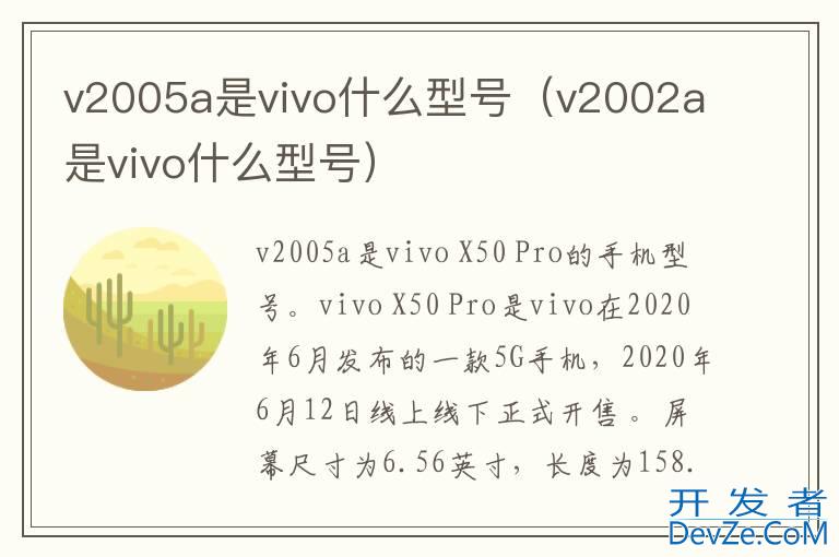 品牌型号:vivo X50 Pro 系统:OriginOS 1.0 v2005a是vivo X50 Pro的手机型号。vivo X50 Pro是vivo在2020年6月发布的一款5G手机,2020年6