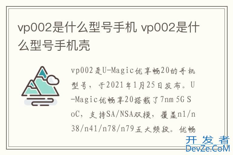 品牌型号:U-Magic优畅享20 系统:EMUI10.1vp002是U-Magic优享畅20的手机型号,于2021年1月25日发布。U-Magic优畅享20搭载了7nm 5G SoC,支持SA/NS