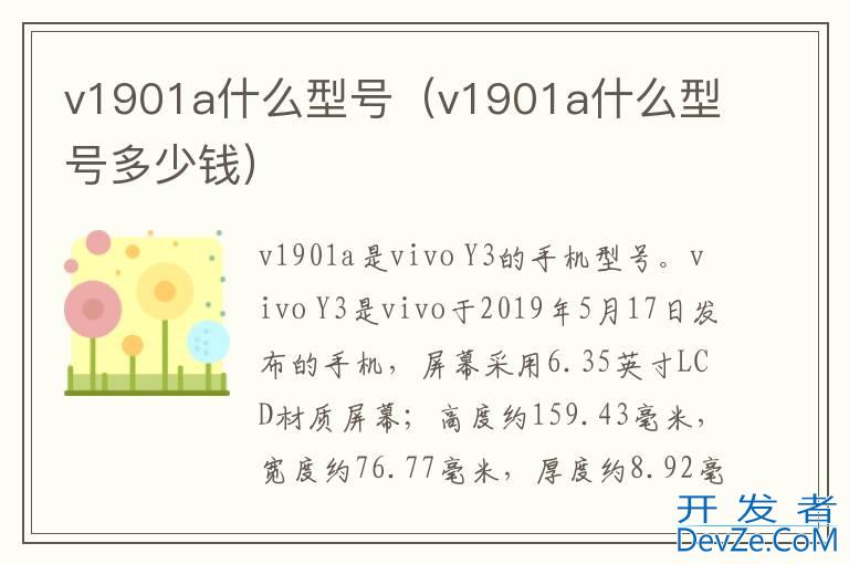 品牌型号:vivo Y3 系统:Funtouch OS 9开发者_如何学C v1901a是vivo Y3的手机型号。vivo Y3是vivo于2019年5月17日发布的手机,屏幕采用6.35英寸LC