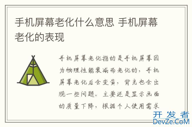 开发者_如何学Python 品牌型号:iPhone13 pro 系统:IOS15.4手机屏幕老化指的是手机屏幕因为物理性能衰减而老化的,手机屏幕老化后会变黄,背光也会出现一些问题。主要还是显示画面的质