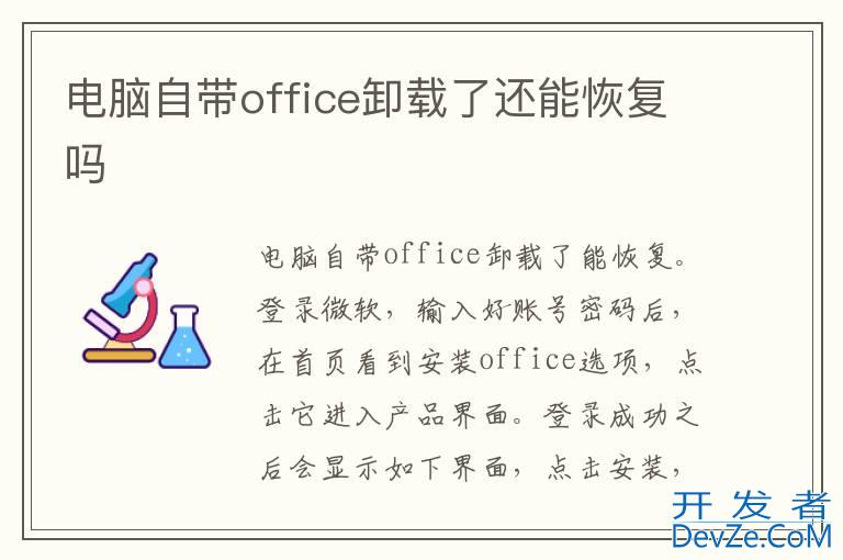 品牌型号:联想拯救者Y9000P 系统:Windows 11 软件版本:office2021电脑自带office卸载了能恢复。登录微软,输入好账号密码后,在首页看到安装office选项,点击它进入产品