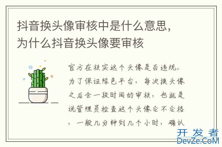 品牌型号:华为P50 系统:HarmonyOS 3 软件版本:抖音21.5.0抖音换头像审核中的意思是官方在核实这个头像是否违规。为了保证绿色平台,和保证新设的头像不违规,每次换头像之后会一段时间的审