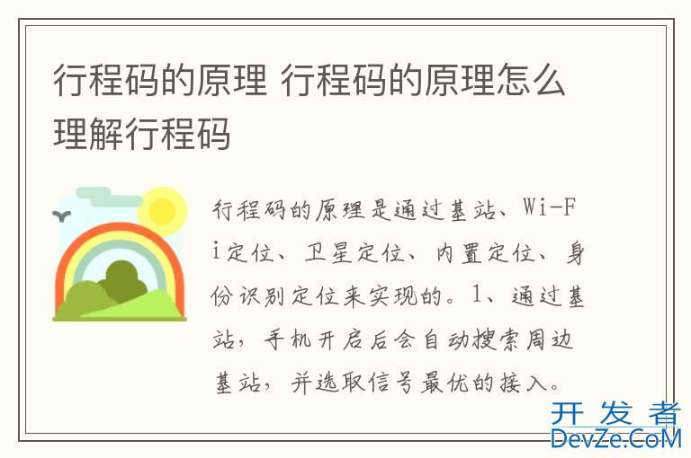 品牌型号:iPhone13 pro pro 系统:IOS15.5 软件版本:微信8.0.25行程码的原理是通过基站、Wi-Fi定位、卫星定位、内置定位、身份识别定位来实现的。1、通过基站,手机开启后会