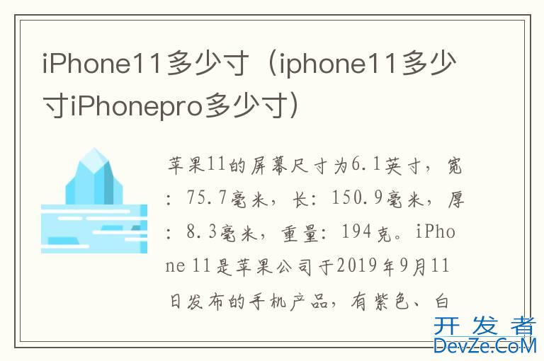 品牌型号:iPhone 11 pro 系统:IOS15.5开发者_Python百科 iPhone11的屏幕尺寸为6.1英寸,宽:75.7毫米,长:150.9毫米,厚:8.3毫米