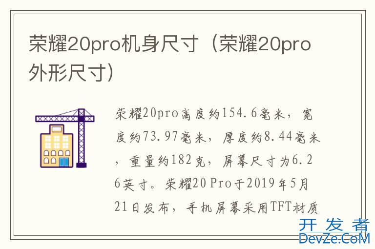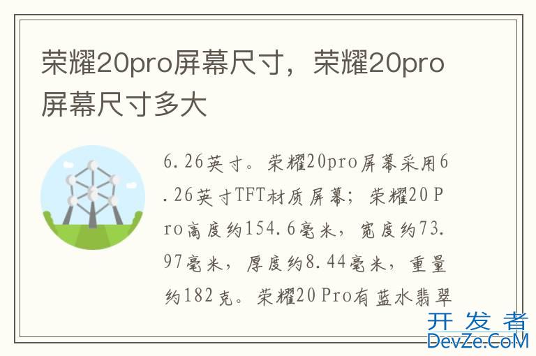 品牌型号:荣耀20pro 系统:Android 9荣耀20pro屏幕尺寸是6.26英寸。荣耀20pro屏幕采用6.26英寸TFT材质屏幕;荣耀20 Pro高度约154.6毫米,宽度约73.97毫米,厚