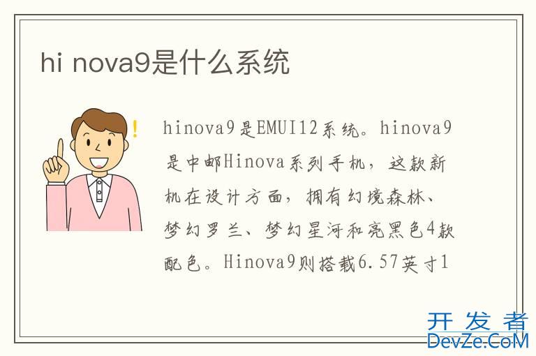 品牌型号:hinova9 系统:EMUI12hinova9是EMUI12系统。hinova9是中邮Hinova系列手机,这款新机在设计方面,拥有幻境森林、梦幻罗兰、梦幻星河和亮黑色4款配色。Hinov