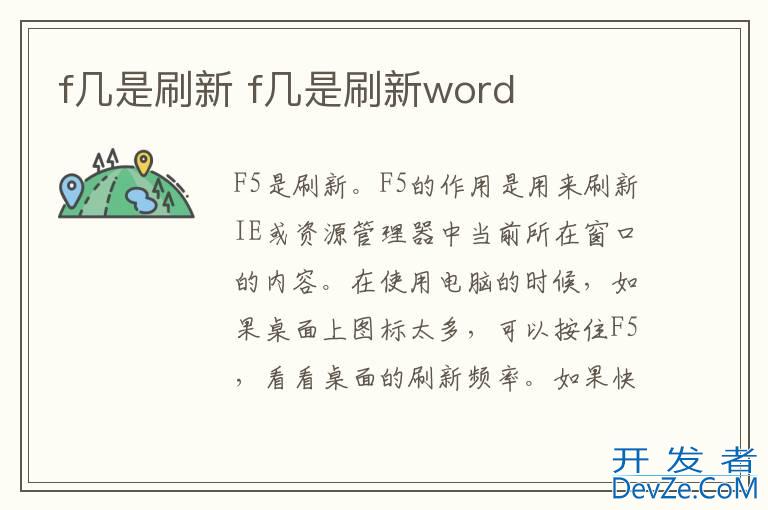 品牌型号:罗技键盘 系统:K120F5是刷新。F5的作用是用来刷新IE或资源管理器中当前所在窗口的内容。在使用电脑的时候,如果桌面上图标太多,可以按住F5,看看桌面的刷新频率。如果快,证明这台电脑的配
