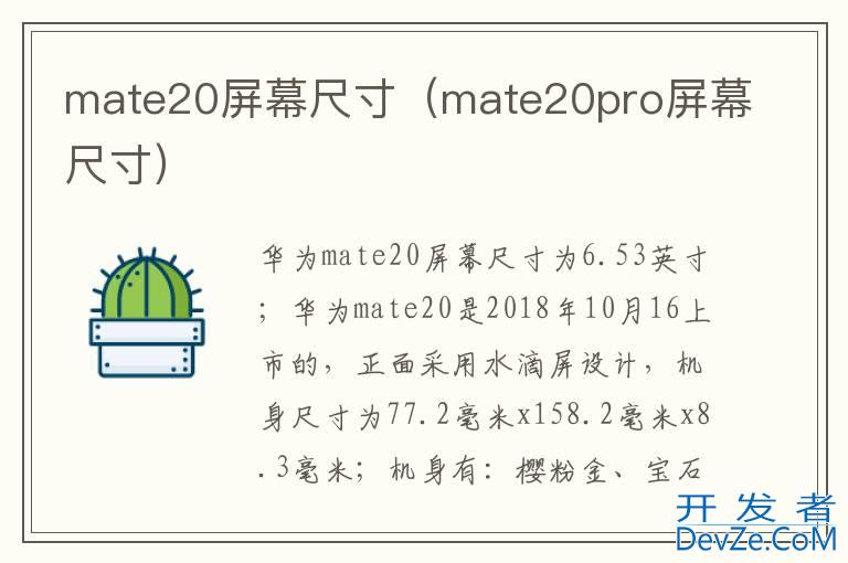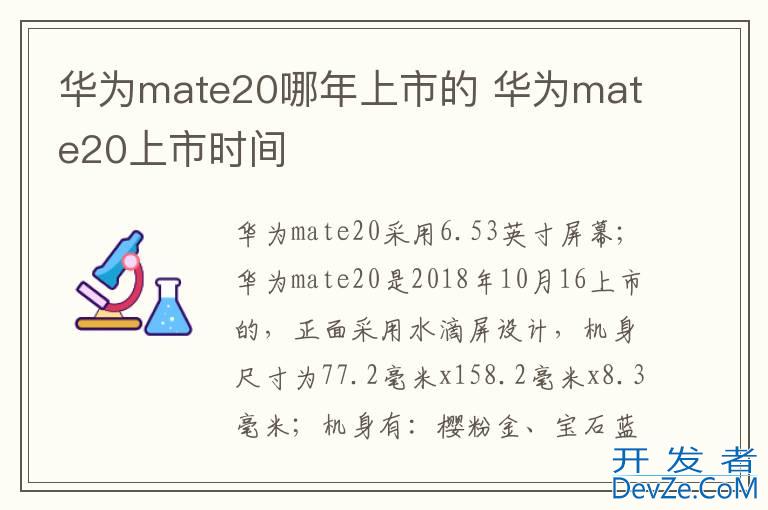 品牌型号:HUAWEI Mate 20 系统:EMUI9.0开发者_如何学运维 华为mate20采用6.53英寸屏幕;华为mate20是2018年10月1