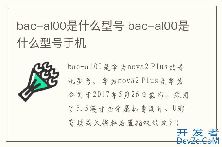 品牌型号:华为nova2 Plus 系统:EMUI 12bac-al00是华为nova2 Plus的手机型号。华为nova2 Plus是华为公司于2017年5月26日发布。采用了5.5英寸全金属机身设