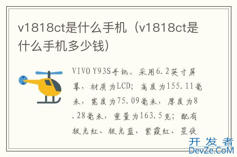 开发者_如何学运维品牌型号:VIVO Y93S 系统:Funtouch os10v1818ct是VIVO Y93S手机。采用6.2英寸屏幕,材质为LCD;高度为155.11毫米,宽度为75.09毫米,
