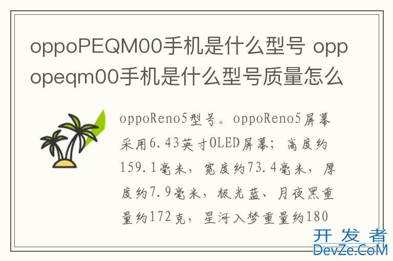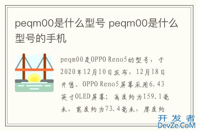 品牌型号:OPPO Reno5 系统:colorOS12.1peqm00是OPPO Reno5的型号,于2020年12月10日发布,12月18日开售。OPPO开发者_开发问答 Reno5屏幕采用6.4