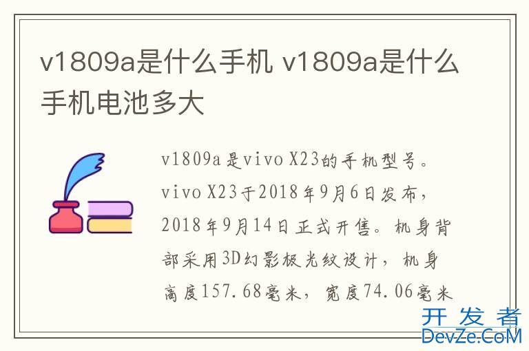 品牌型号:vivo X23 系统:FuntouchOS 4.5v1809a是vivo X23的手机型号。vivo X23是vivo公司2018年9月6日在北京发布的手机产品,于2018年9月14日正式