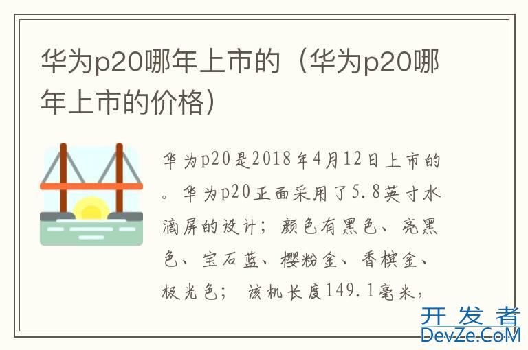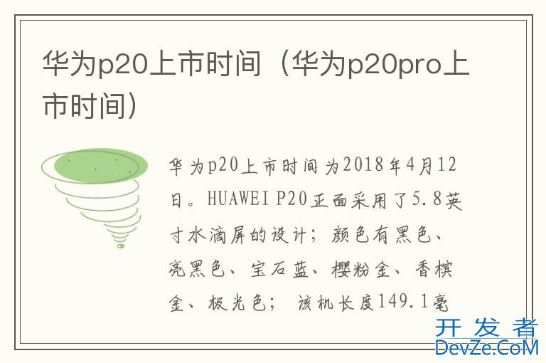 品牌型号:华为p20 系统:EMUI 8.1华为p20是2018年4月12日上市的。华为p20正面采用了5.8英寸水滴屏的设计;颜色有黑色、亮黑色、宝石蓝、樱粉金、香槟金、极光色; 该机长度149.1