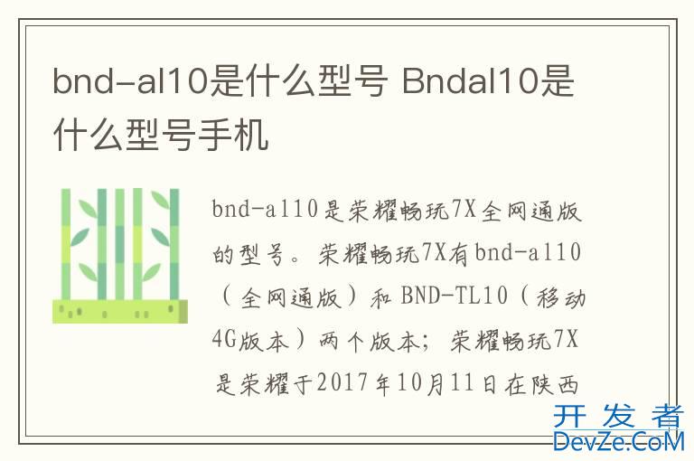 品牌型号:荣耀畅玩7X全网通版 系统:EMUI 5.1bnd-al10是荣耀畅玩7X全网通版的型号。荣耀畅玩7X有bnd-al10(全网通版)和 BND-TL10(移动4G版本)两个版本;荣耀畅玩7X