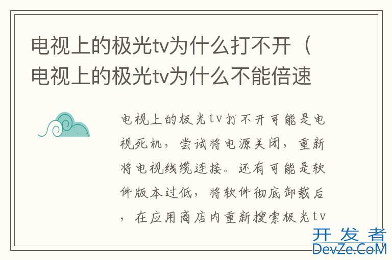品牌型号:索尼KD-85X85J 系统:Android开发者_如何转开发 电视上的极光tv打不开可能是电视死机,尝试将电源关闭,重新将电视线缆连接。还有可能是软件