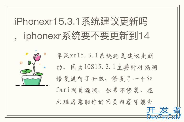 品牌型号:iPhone XR 系统:IOS15.4开发者_如何学JAVA iPhonexr15.3.1系统还是建议更新的。因为IOS15.3.1主要针对漏洞修复进行了升级,包括