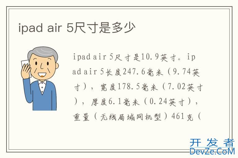 品牌型号:iPad air Air 5 系统:iPad airOS 15.4开发者_开发百科 ipad air 5尺寸是10.9英寸。ipad air 5长度247.6毫米(9.74英寸),宽度1