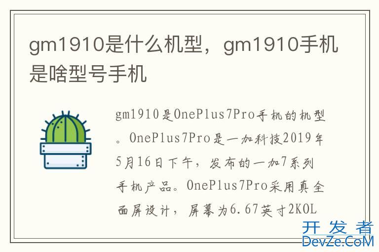 品牌型号:OnePlus7Pro 系统:H2OS开发者_JAVA百科 gm1910是OnePlus7Pro手机的机型。OnePlus7Pro是一加科技2019年5月16日下午,在北京雁栖湖国际