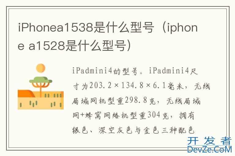 品牌型号:iPad air mini 4 系统:iPad airOS 15.4iPhonea1538是iPad air mini 4的型号。iPad air mini 4尺寸为203.2×134.8×