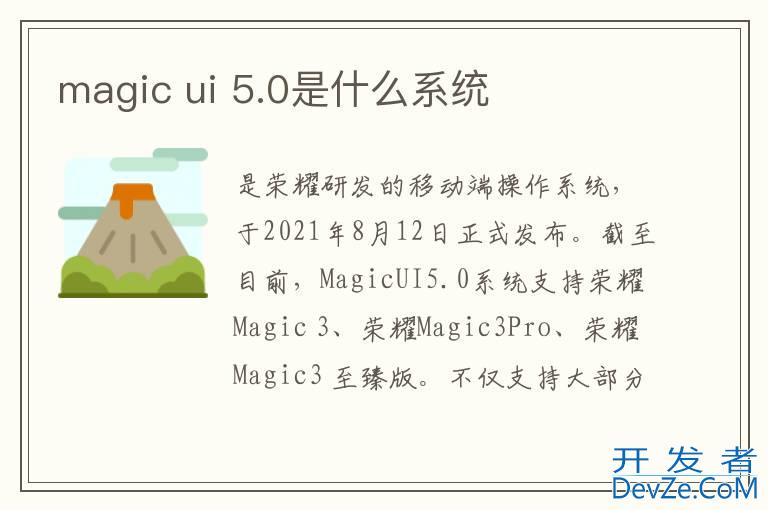 品牌型号:荣耀Magic3 系统:Magic UI 5.0开发者_StackOverflow社区 magic ui 5.0是荣耀研发的移动端操作系统,于2021年8月12日正式发布。截至