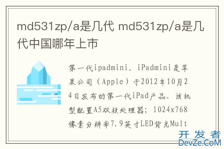 品牌型号:iPad air mini 系统:iPad airOS 15.4md531zp/a是第一代ipadmini。iPad airmini是iPhone公司(Apple)于2012年10月24日发