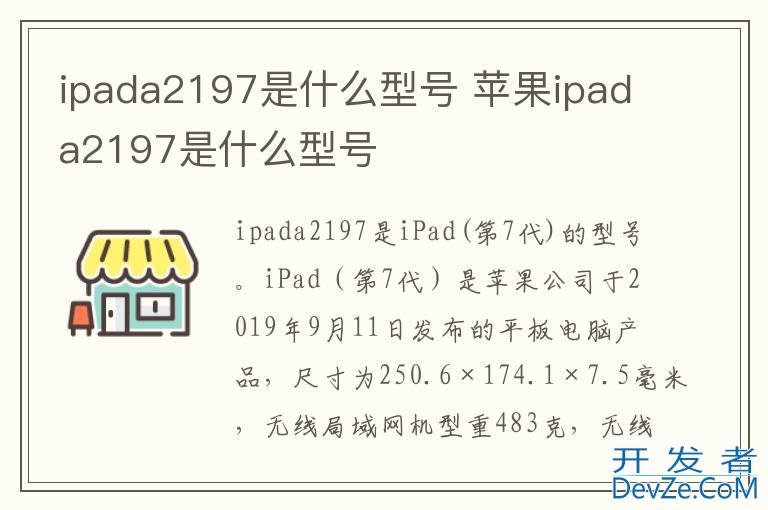 品牌型号:iPad air(第7代) 系统:iPad airOS 13ipada2197是iPad air(第7代)的型号。iPa开发者_如何学运维d air(第7代)是iPhone公司于2019年9