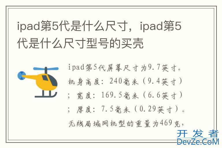 品牌型号:ipad第5代 系统:iPad airOSipad第5代屏幕尺寸为9.7英寸。机身高度:240毫米(9.4英寸);宽度:169.5毫米(6.6英寸);厚度:7.5毫米(0.29英寸)。无线局