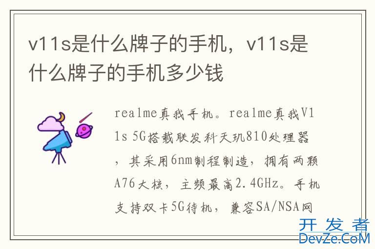 品牌型号:realme真我V11s 系统:Android 11v11s是realme真我手机。realme真我V11s 5G搭载联发科天玑810处理器,其采用6nm制程制造,拥有两颗A76大核,主频最