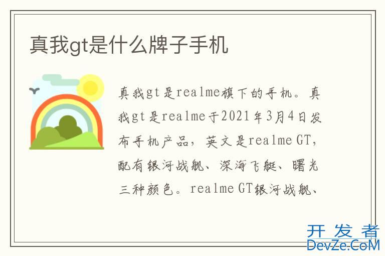 品牌型号:realme GT 系统:realme UI 2.0真我gt是realme旗下的手机。真我gt是realme于2021年3月4日发布手机产品,英文是realme GT,配有银河战舰、深海飞艇