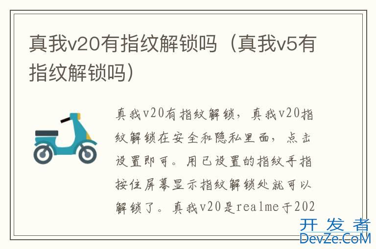 品牌型号:realme V20 系统:realme UI 3.0真我v20有指纹解锁,真我v20指纹解锁在安全和隐私里面,点击设置即可。用已设置的指纹手指按住屏幕显示指纹解开发者_Go百科锁处就可以解