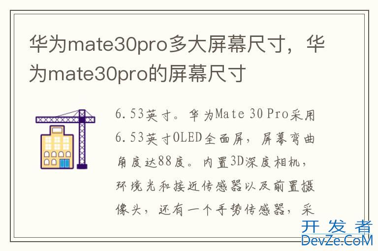 品牌型号:华为Mate 30 Pro 系统:HarmonyOS 3华为mate30pro屏幕尺寸为6.53英寸。华为Mate 30 Pro采用6.53英寸OLED全面屏,屏幕弯曲角度达88度。内置3D