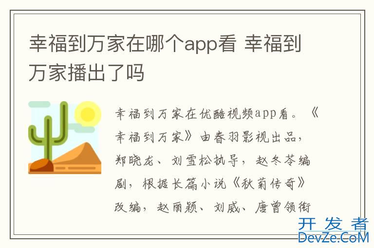 品牌型号:iPhone13 pro pro 系统:iOS 15.6 软件版本:优酷视频10.2.41幸福到万家在优酷视频app看。《幸福到万家》由春羽影视出品,郑晓龙、刘雪松执导,赵冬苓编剧,根据长篇