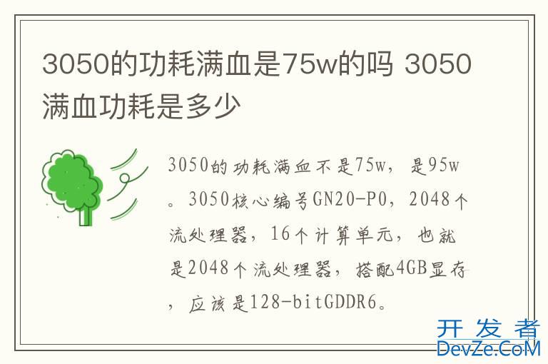 品牌型号:微星显卡 系统:RTX3050开发者_如何转开发 3050的功耗满血不是75w,是95w。3050核心编号GN20-P0,2048个流处理器,16个计算单元,也就是204