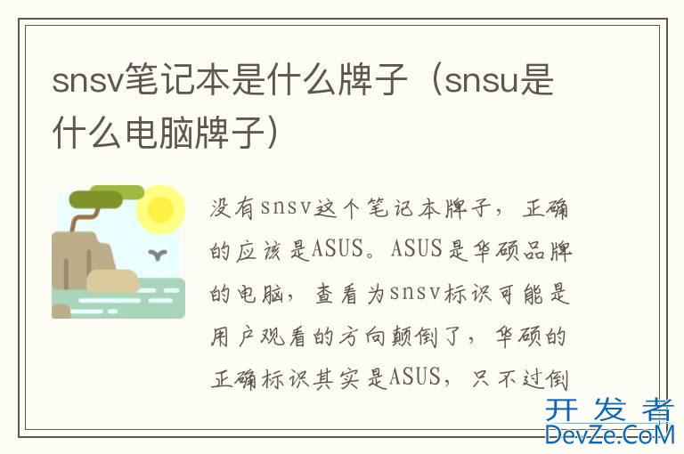 品牌型号:华硕天选3 系统:Windows 11没有snsv这个笔记本牌子,正确的应该是“ASUS”。ASUS是华硕品牌的电脑,查看为snsv标识可能是用户观看的方向颠倒了,华硕的正确标识其实是ASU