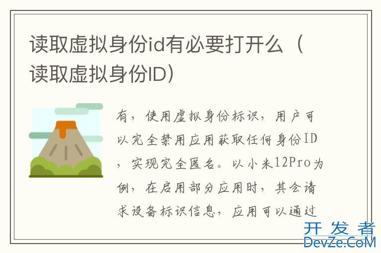品牌型号:小米12Pro 系统:MIUI13读取虚拟身份id是有必要打开的,打开虚拟身份id,用户可以改头换面,还可以完全禁用应用获取任何身份ID,实现完全匿名。以小米12Pro为例,部分app会获取