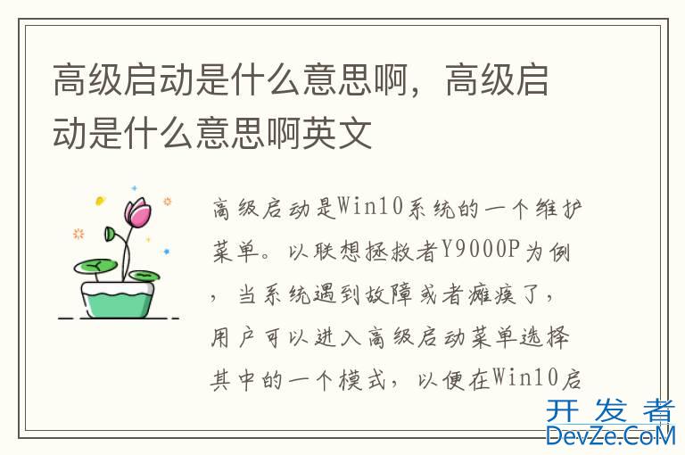 品牌型号:联想拯救者Y9000P 系统:Windows10高级启动是Win10系统的一个维护菜单。高级启动模式主要是用于维护、修复Win10系统,可以在高级疑难解答模式下启动Windows。以联想拯