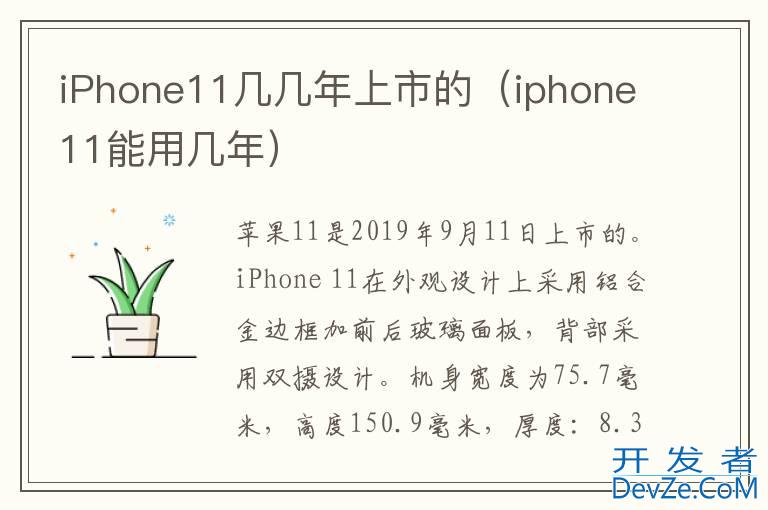 品牌型号:iPhone11 系统:IOS15.4iPhone11是2019年9月11日上市的。iPhone 11 pro在外观设计上采用铝合金边框加前后玻璃面板,背部采用双摄设计。机身宽度为75.7毫