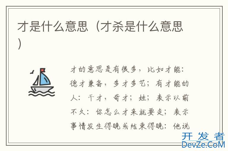 才的意思是有很多,比如才能:德才兼备,多才多艺;有才能的人:干才,奇才;姓;表示开发者_StackOverflow中文版以前不久:你怎么才来就要走;表示事情发生得晚或结束得晚:他说星期三动身,到星期五