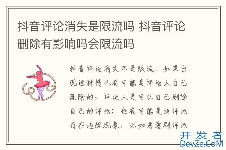 品牌型号:华为P50 系统:HarmonyOS3 软件版本:抖音20.1.0开发者_JS百科 抖音评论消失不是限流。如果出现这种情况有可能是评论人自己