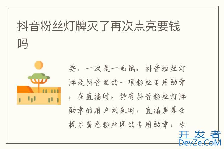 品牌型号:iPhone13 pro 系统:IOS15.4 软件版本:抖音19.8.0抖音粉丝灯牌灭了再次点亮是要钱的。一次是一毛钱,也可以花60个抖币永久加入粉丝团,这样就可以少花钱了。开发者_如何转
