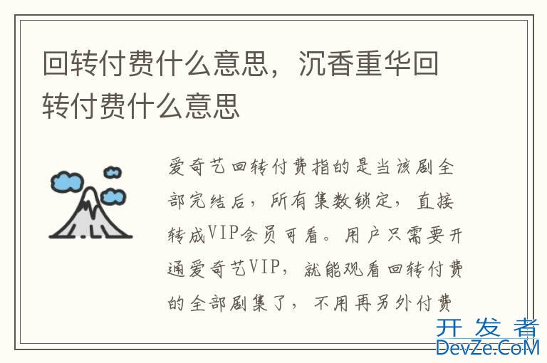 品牌型号:vivo X70 Pro 系统:OriginOS 1.0 软件版本:爱奇艺6.8.89.6786爱奇艺回转付费指的是当该剧全部完结后,所有集数锁定,直接转成VIP会员可看。用户只需要开通爱