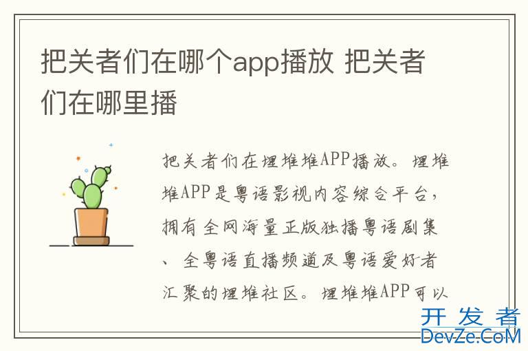 品牌型号:iPhone13 pro pro 系统:iOS 16.0 软件版本:埋堆堆开发者_C百科4.4.28把关者们在埋堆堆APP播放。埋堆堆APP是粤语影视内容综合平台,拥有全网海量正版独播粤语剧